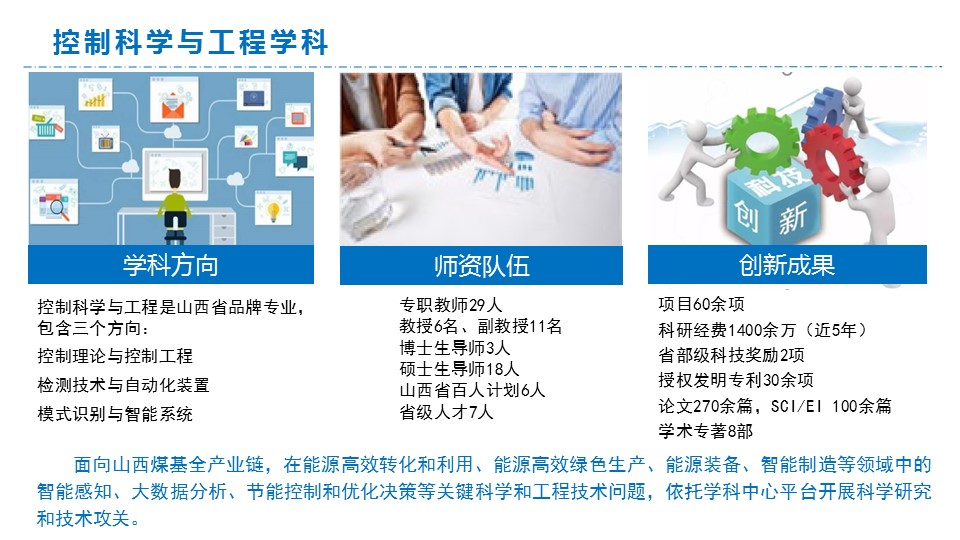 太阳成tyc7111cc集团始建于1918年山西大学堂西学专斋时开设的电气学门,1931年成立电气工程系,1953 年太原工学院独立建院时成立电机工程系,1958年山西矿业学院建院成立机电系。1998年由原太原工业大学电机工程系、热能工程系和原山西矿业学院电气工程系组建成立太阳成tyc7111cc集团。2017年12月学校机构调整将自动化系由原信息工程学院划入学院。